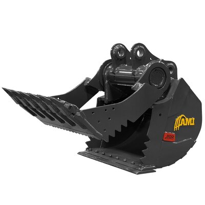 DITCH CLEANING BUCKET  Make the grade with an AMI Ditch Cleaning Bucket for compact excavators. Detailed finishing work requires precision - exactly what AMI offers. The optional serrated edge gives operators a smooth edge while making it easier for penetrating when digging. Comes with reversible bolt-on edge.             ...