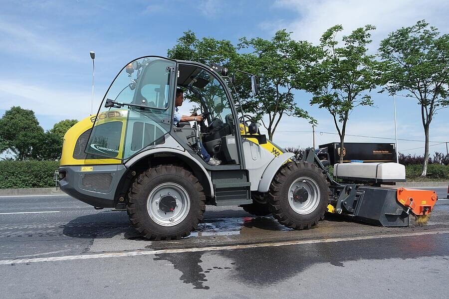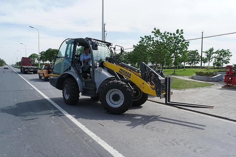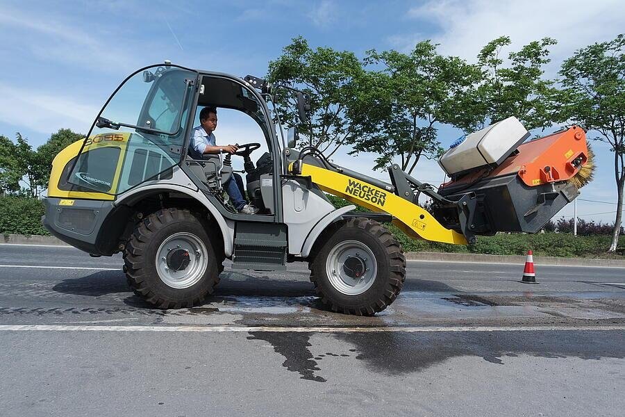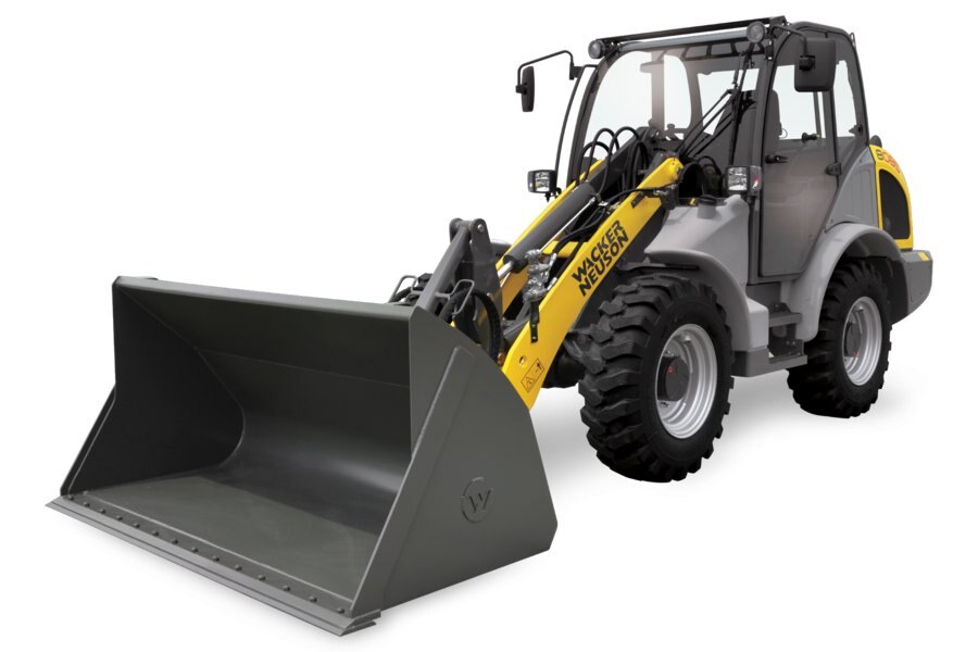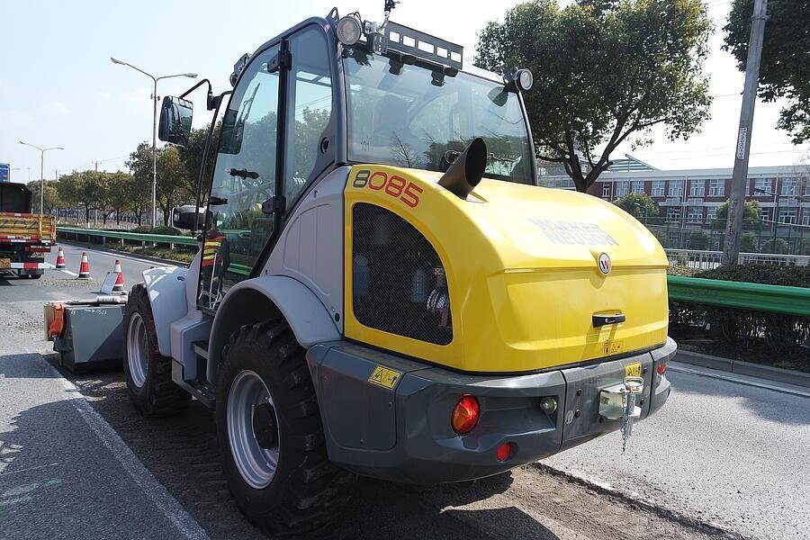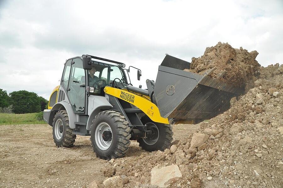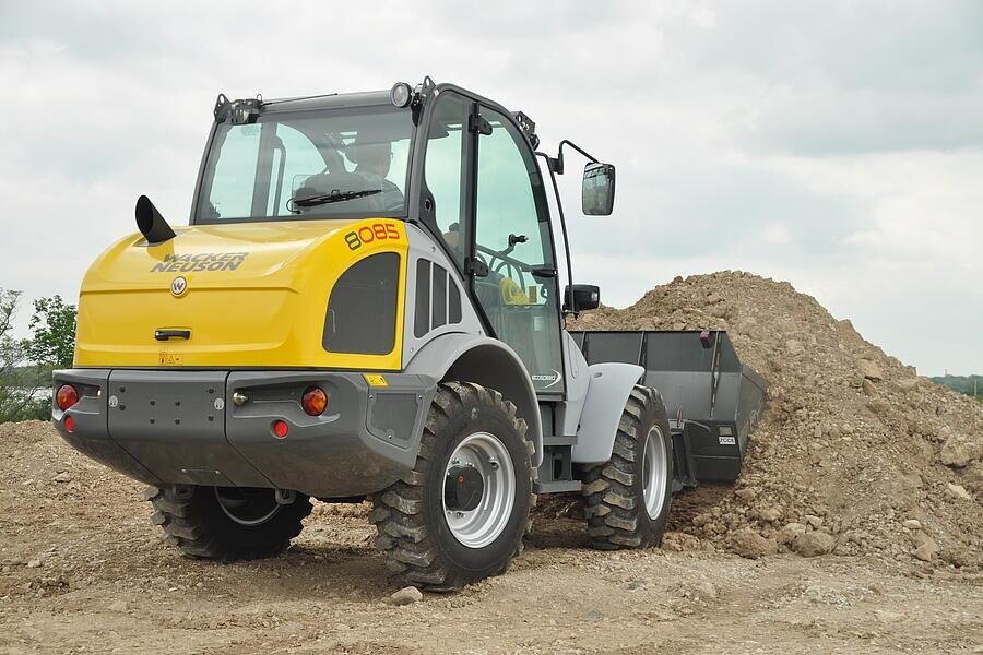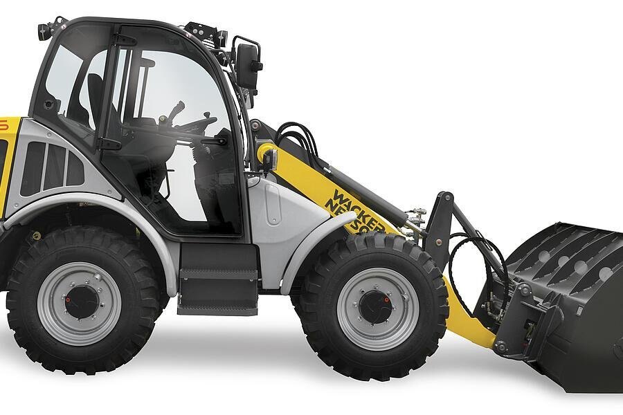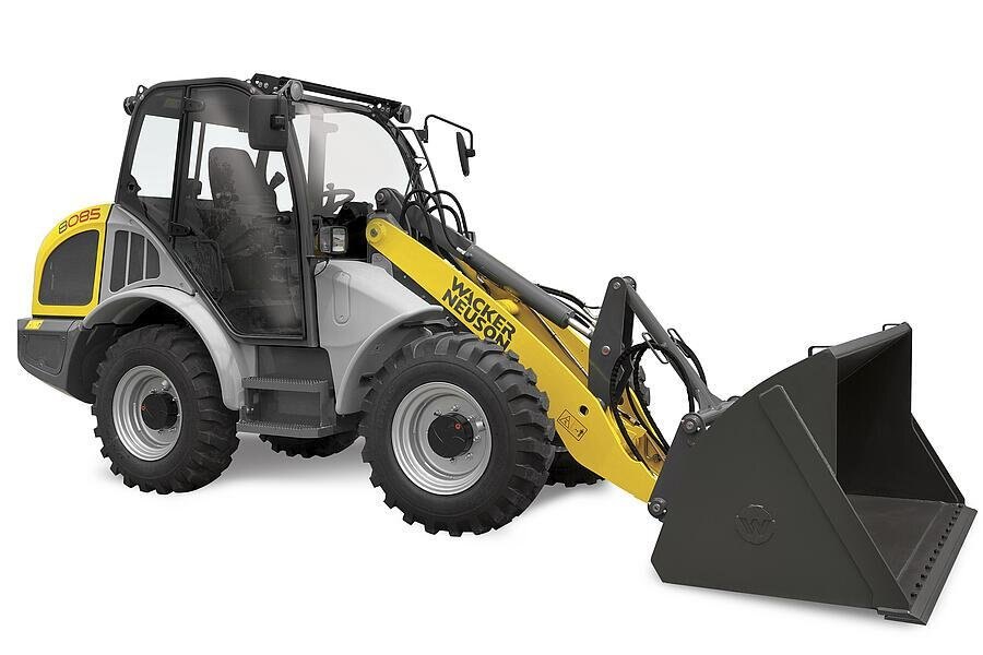 The 8085 wheel loader sets new standards in terms of technology, performance and comfort. The efficient high-pressure traction drive and the 100% engageable differential lock enable maximum thrust and best traction in daily use. The undivided frame also ensures high stability and enormous maneuverability in this machine. The large and comfortable cabin completes the equipment of the wheel loader.
