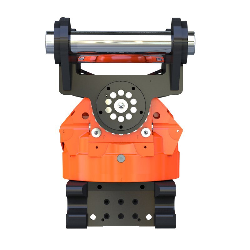 The AXXIS™ can be connected sandwich style using a standard hydraulic coupler for easy removal of the tiltrotator when not required. |