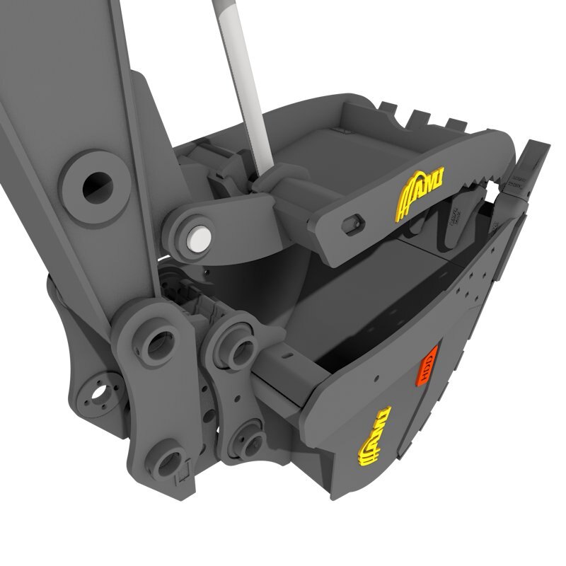Thumbs up! The AMI Hydraulic Weld On Thumb offers a practical option for operators who are looking for durability, impressive holding strength and flexible thumb positioning. Ideal for clamping and moving a variety of materials, including brush, boulders, logs and poles, the thumb folds tight to the stick when not in use and features serrated tines for better gripping. Available in multiple widths and lengths to match various coupler and bucket configurations..