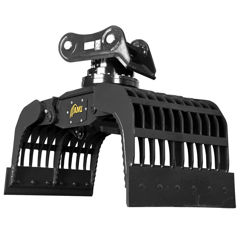 High performance strength meets cutting-edge agility with AMI Attachments’ Extractor - the versatile demolition and sorting grapple capable of taking down buildings, moving large volumes of material, and picking through fine recyclables. Built for strenuous work, the Extractor is made with Hardox Wear Plates and Strenx steel and moves higher volumes of material using less fuel - cycle after cycle. The Extractor rotates 360 degrees and features flexible jaw operation with edge-to-edge contact, reversible cutting edges, and zero clearance design for maximum productivity. |