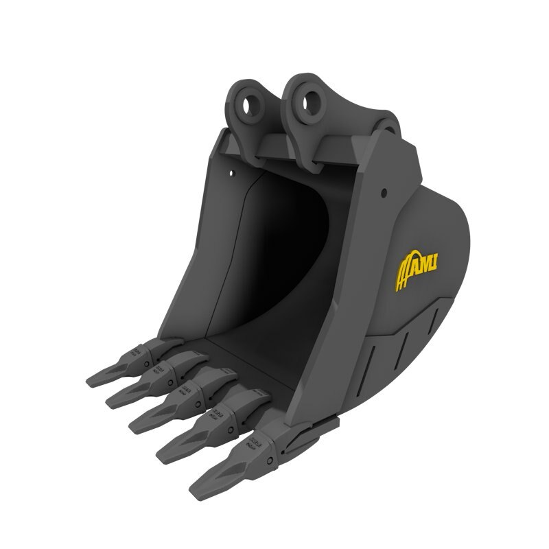 With thicker AR400 wear steel in all wear areas including base edge, side cutter plates, larger cheek plates, and horizontal wear bars, the Severe Duty Bucket is built for higher abrasion conditions. Featuring a standard dual radius profile on the floor and heel of bucket for maximum wear and performance. Various ground engaging hardware available.