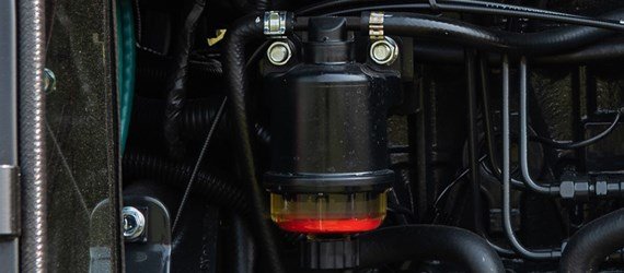The water-separating fuel filter prevents foreign substances from entering the fuel, ensuring better engine start ability and preventing damage to the machine. |