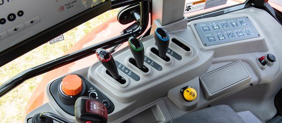 Operators can activate core functions easily from the main console, including the PTO on/off switch. Digital displays provide alerts and diagnostic information instantly and at a glance. In addition to a spacious and ergonomic seat, the operator platform has a flat floor with a rubber mat to support comfort during entry, exit and while driving. |