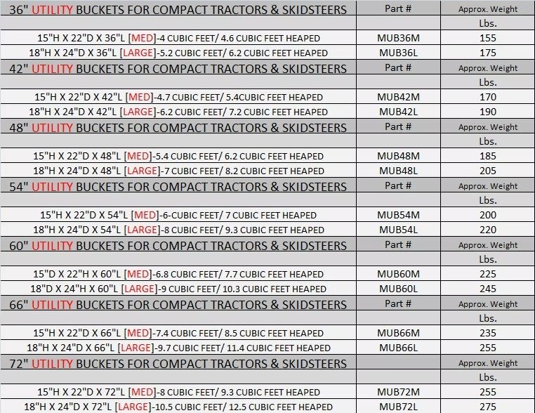 • *All buckets can be custom fabricated & Design Built to any size or      specification.