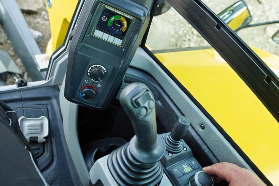 • The powerful drive system combines with a load-sensing hydraulic system (LUDV) to deliver quick working cycles, greater application flexibility, and easier control for comfortable and fatigue-free operation of the excavator. No matter what the load to be moved, the control movements on the joystick stay the same. Along with increased operating comfort, this results in a performance plus, while simultaneously reducing fuel consumption.