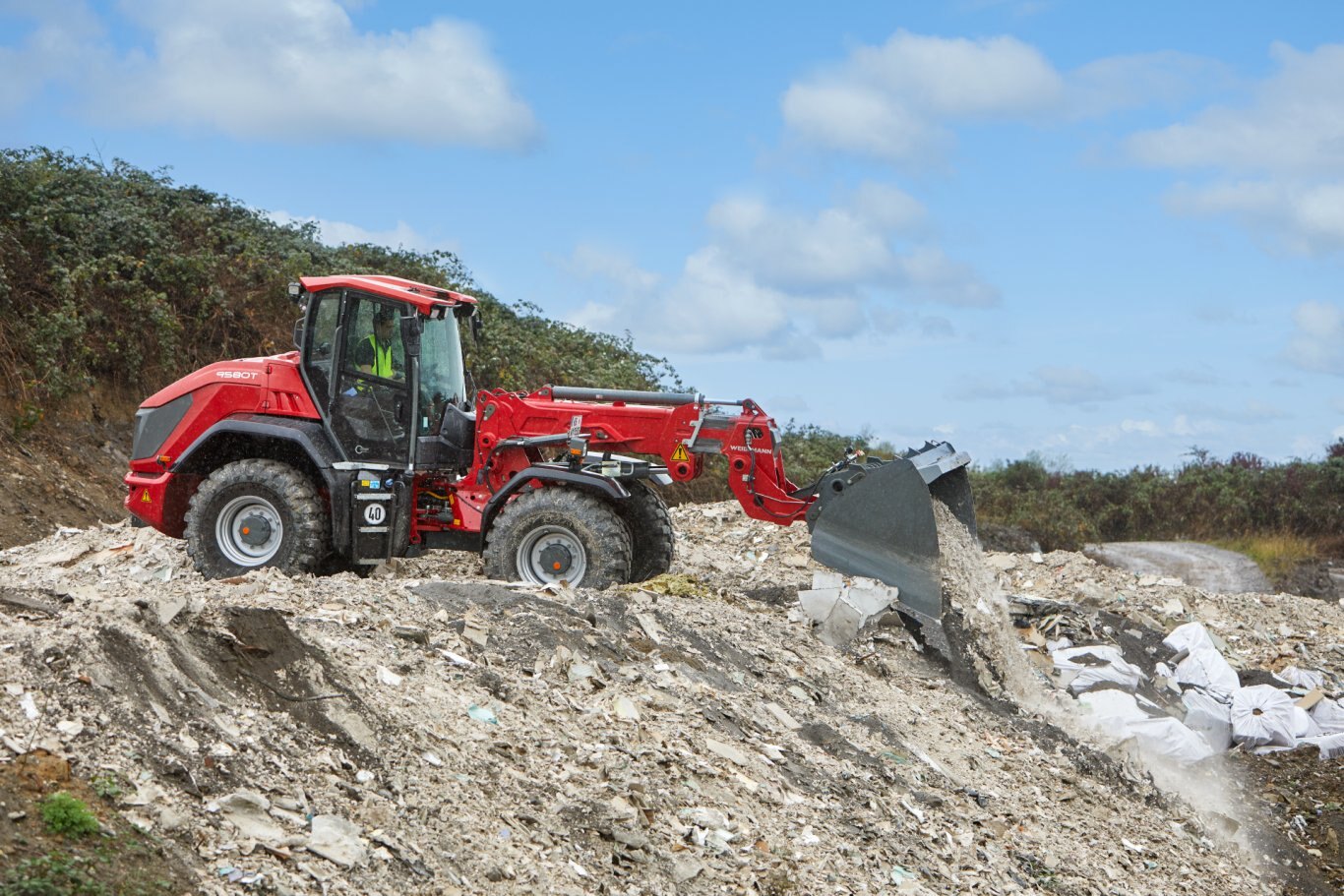 The loading swing damping can be activated electrically and enables optimum handling of the machine in rough terrain and during road travel. It is particularly advisable when the machine transports heavy loads in the bucket or on the pallet fork, or moves a heavy attachment over a long distance at high speed. Here, the loading swing damping provides a substantial increase in comfort for the operator.