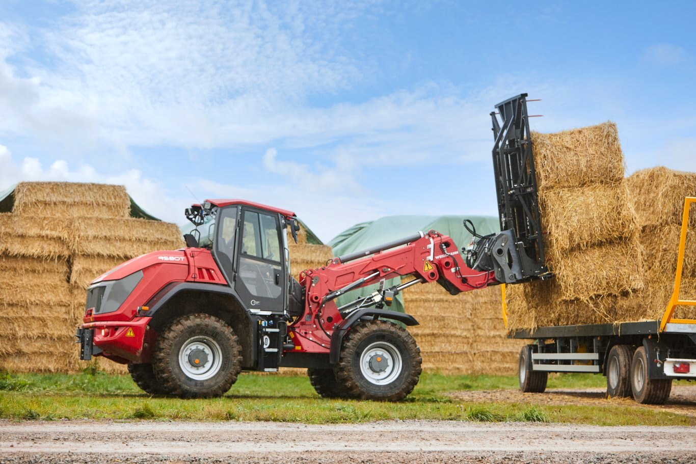 The tele wheel loader 9580T was designed for especially heavy material handling – such as, for example, constantly occurs at large companies and biogas plants, at silos or with a high number of big bales. Also for the area of recycling, industrial companies and municipal use, machines of this size class prove themselves best. On the tele wheel loader 9580T, our Lowering Assistant goes into action. It involves a partially automated driver assistance system, which automatically telescopes the telescopic arm in when lowering. This allows efficient loading cycles and increases safety when working with the machine. With the infinitely variable hydrostatic transmission Power Drive 370 (PD 370), high traction forces and driving speeds can be attained. This way, speeds of up to 40 km/h / 24.85 mph are possible without switching gears. This enables extremely comfortable driving.