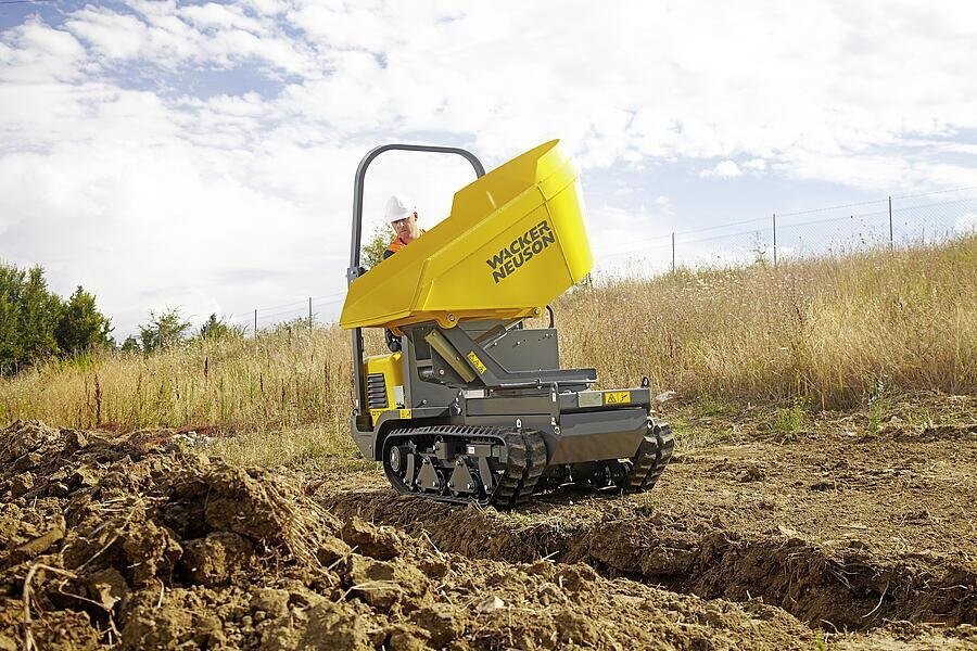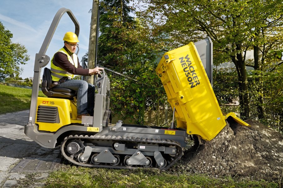 The DT15 is the ideal transporter on the construction site for extensive work. The large skip selection combined with the comfortable and intuitive hydrostatic drive system as well as the high payload make it the perfect versatile material handler. The single-piece engine hood and the optimal arrangement of the service points also make daily maintenance much easier, saving time and effort. The low center of gravity makes it a trustworthy partner in material transport, even with a high load.
