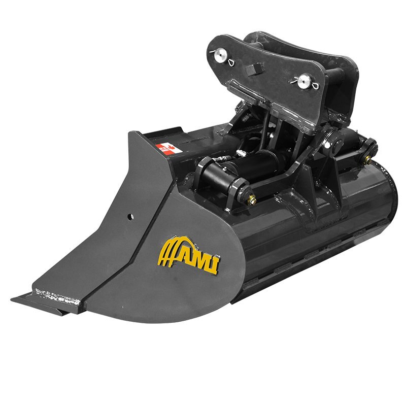 The new design of the Hydraulic Tilt Ditch Cleaning Bucket features a flatter profile, open heel and bigger radius for level grading on uneven terrain. With the versatility of a 45 degree tilt range on each side, you achieve smooth tilting action for an easy, clean finish. Designed specifically to reach those awkward spots with less repositioning of your excavator, the AMI Hydraulic Tilt Ditch Cleaning Bucket allows for level grading on uneven ground, provides a smooth tilting action and is designed to fit tightly when curled up. The bottom reversible cutting edge adds longevity and provides easy in-field maintenance. |