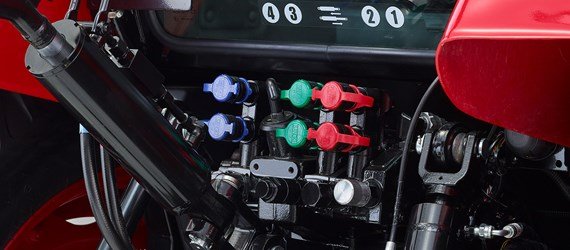 2 separate remotes for the top link means that all 6 external rear remotes can be used to mount a variety of attachments. External top link buttons make attaching and detaching attachments easy. |